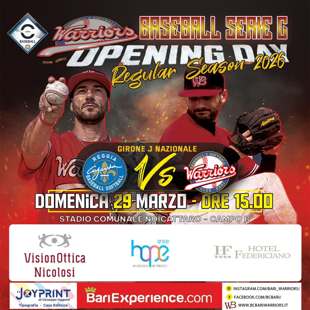 Dopo l’entusiasmante cavalcata della nazionale italiana guidata dal “nostro” Francisco Cervelli (originario di Bitonto), che ha raggiunto le semifinali del World Baseball Classic, il campionato del mondo svoltosi negli Stati Uniti, riparte il campionato nazionale ed i nostri ragazzi dei Warriors Bari sono pronti per affrontarlo con rinnovato entusiasmo.